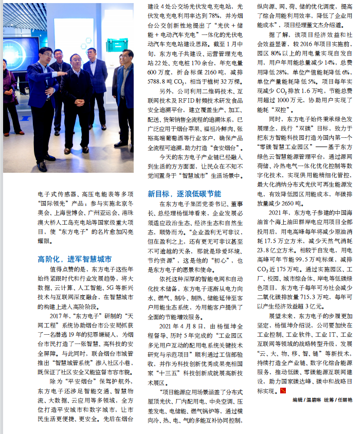同时,惠州市家新旺房地产经纪有限公司始终秉承绿色发展理念,践行“双碳”目标,致力于把东方智能科技园打造为国内第一个“零碳智慧工业园区”——基于东方绿色云智慧能源管理平台,通过源网荷储、冷热电气一体化优化控制等数字化技术,实现供用能精细化管控,最大化消纳分布式光伏可再生能源发电,有效降低园区用能成本,年碳排放量减少 2650 吨。